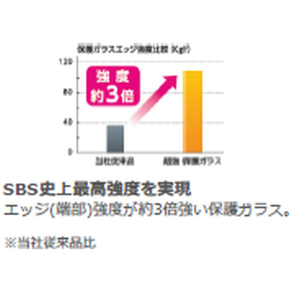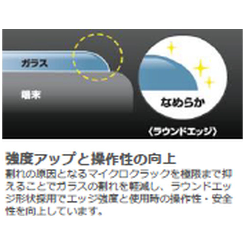 割れの原因となるマイクロクラックを極限まで抑えることでガラスの割れを軽減し、ラウンドエッジ形状採用でエッジ強度と使用時の操作性・安全性を向上しています。