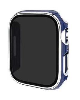 Apple Watch Series10 42mm 液晶プライバシーガラス付PCカバー シルバーライン/ネイビー AW-006C42-SNV