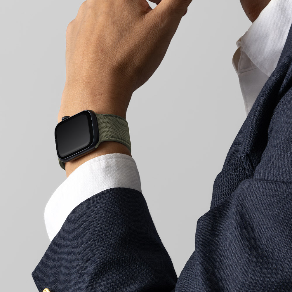 本製品はレザーのようなテクスチャーを追求したシリコンバンドです。ビジネスシーンにも違和感なく溶け込むシンプルデザインでありながら、汗や汚れにも強いためアフターファイブのワークアウトにもお使いいただけます。