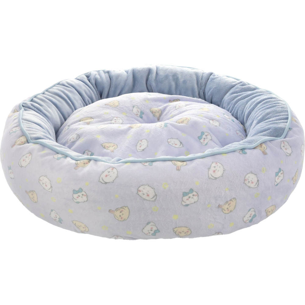 ■ちいかわ総柄ペットベッド ブルー ゴロンとのんびり過ごせるラウンド型ベッド クッションは取り外し可能&表裏つかえるリバーシブル仕様 ■ポイント マイクロファイバー生地で手ざわりふわもこ。