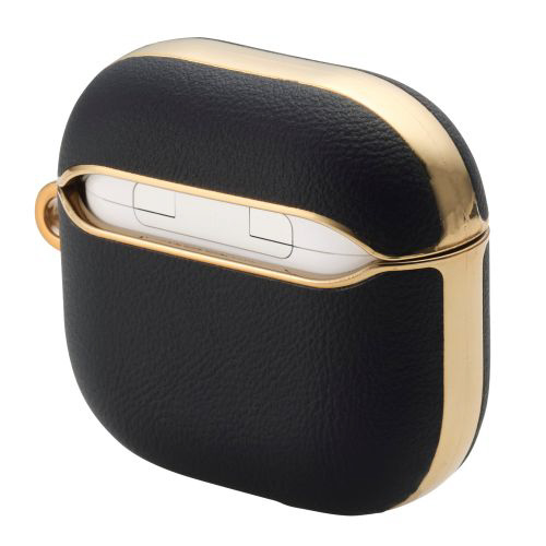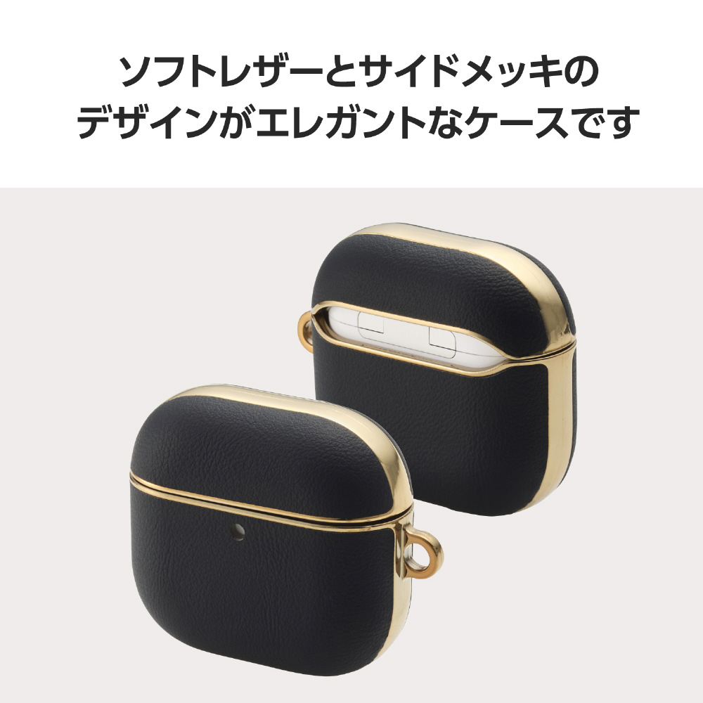 AirPods 4 ケース 用 ソフトレザー カバー ( ワイヤレス / MagSafe 充電対応 ) 衝撃吸収 落下防止 カラビナ付 メッキ加工 ブラック AVA-AP06PLMBK