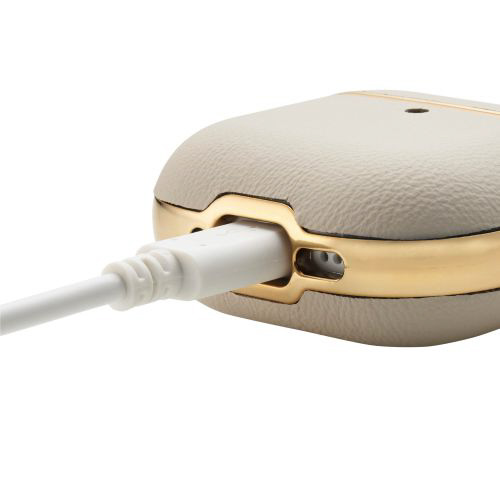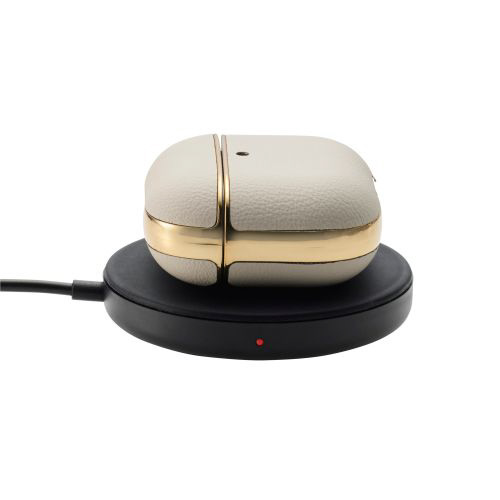ソフトレザーにゴールドの縁取りを施した、レザーアクセサリーのようなAirPods (第4世代)用ケースです。