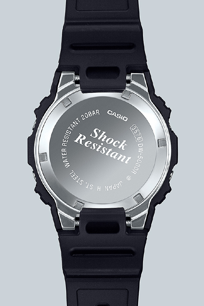 スクリューバックケースの表記レイアウトや、躍動感ある「Shock Resistant」の表記もオリジナルモデルを彷彿とさせ、細部に至るまで意匠が継承されています。