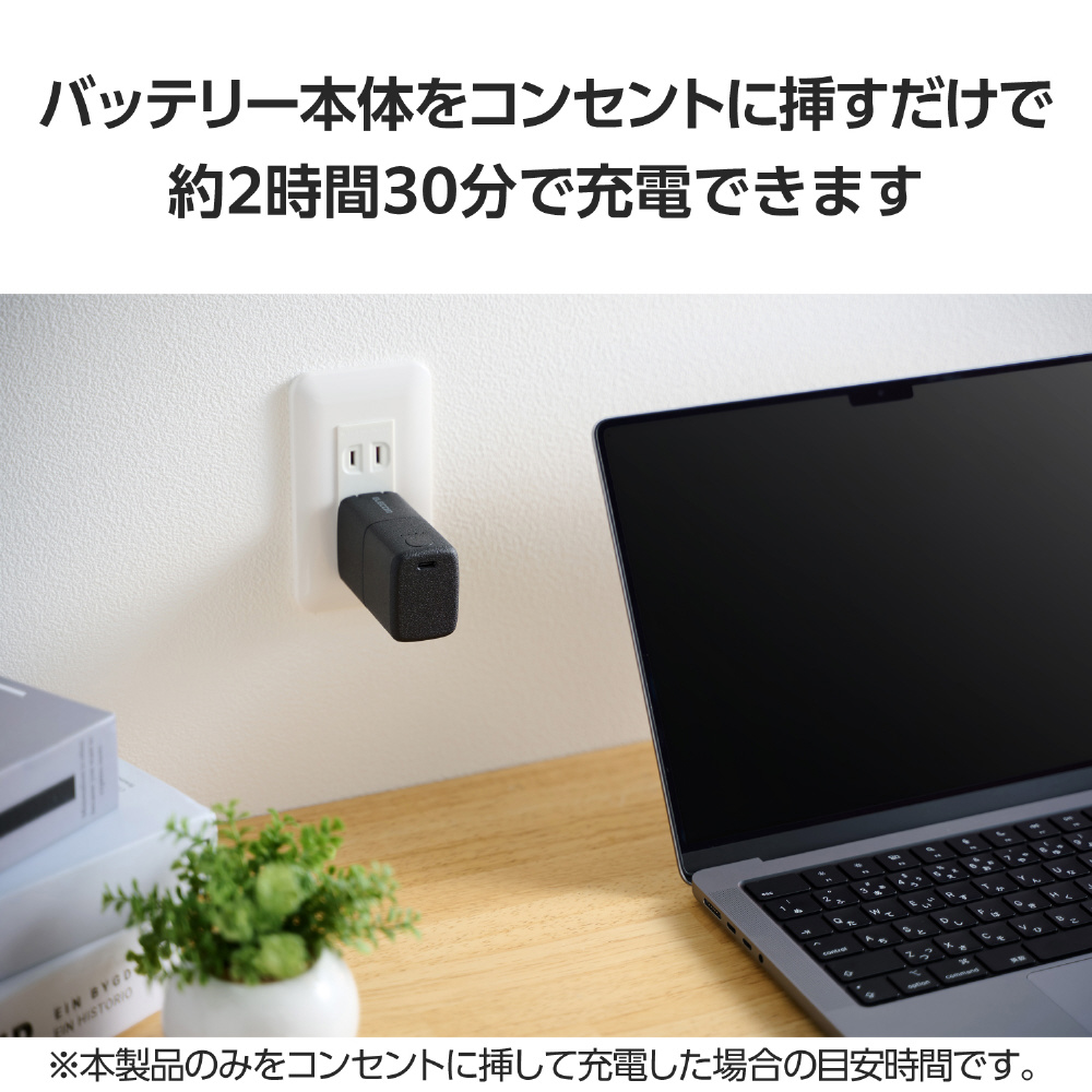 コンセントに挿すだけで本製品を直接充電可能。本製品は約2時間30分で充電できます。