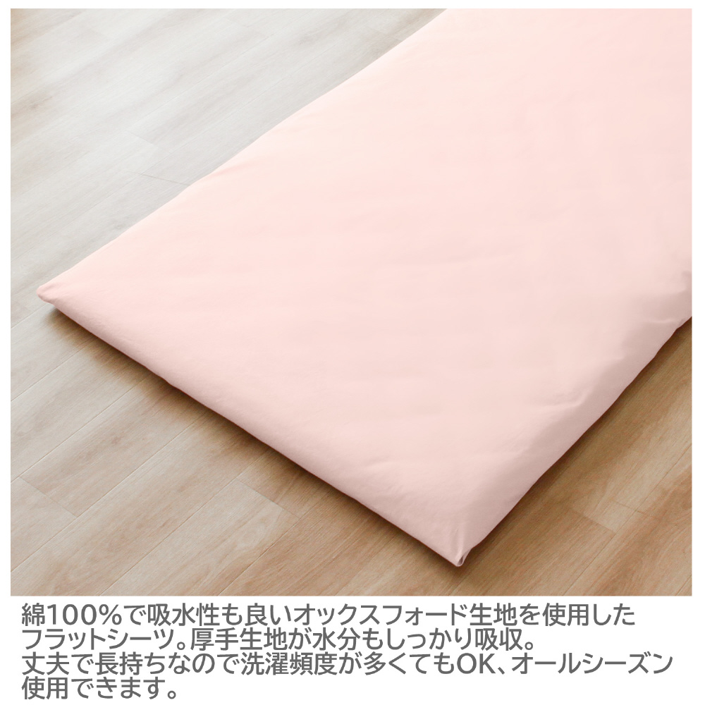 年間使える敷きふとん用シーツ!!一枚布でお布団に入れ込むだけで簡単楽々!!綿100%のしっかり厚手のオックス素材でオールシーズン使えてオススメです♪