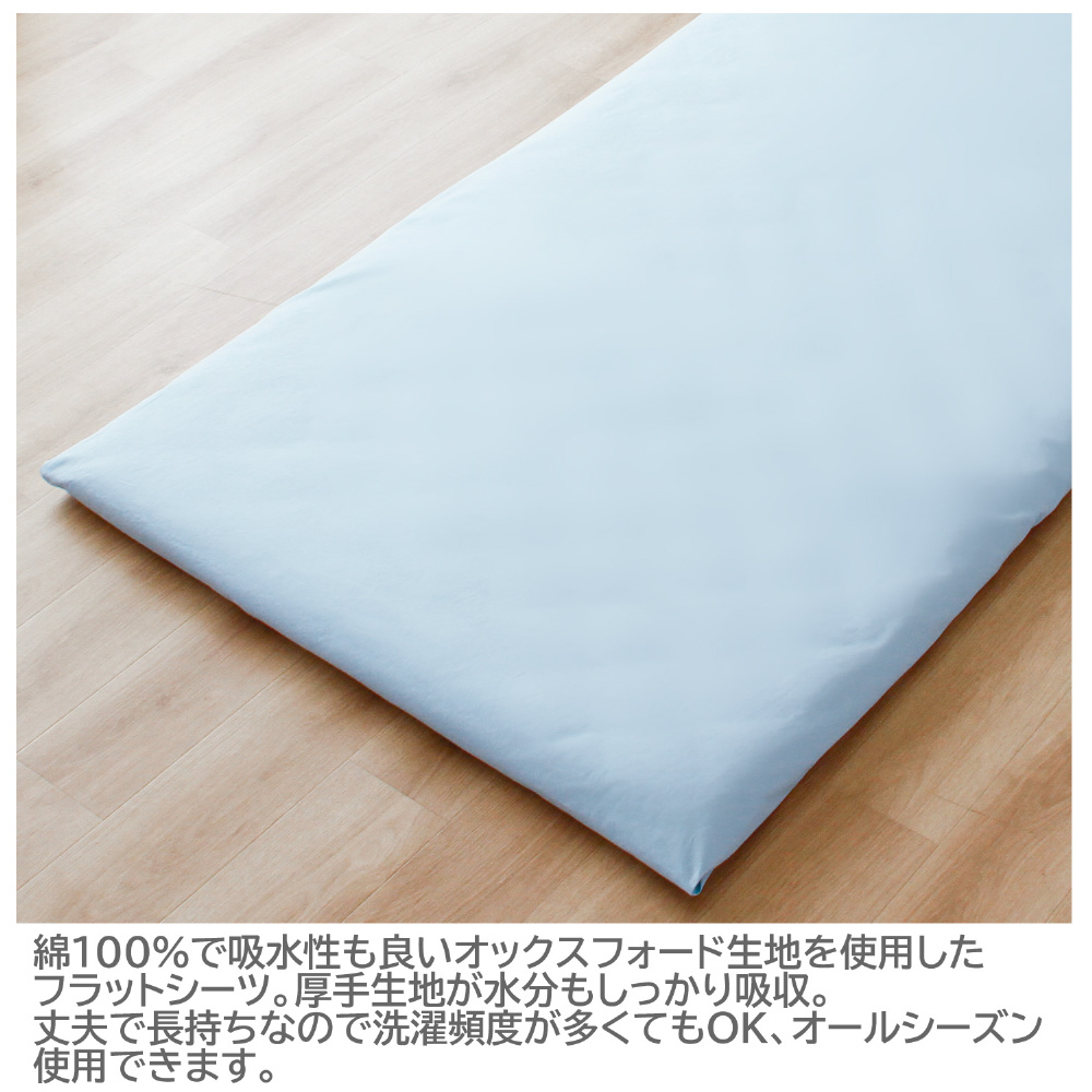 年間使える敷きふとん用シーツ!!一枚布でお布団に入れ込むだけで簡単楽々!!綿100%のしっかり厚手のオックス素材でオールシーズン使えてオススメです♪