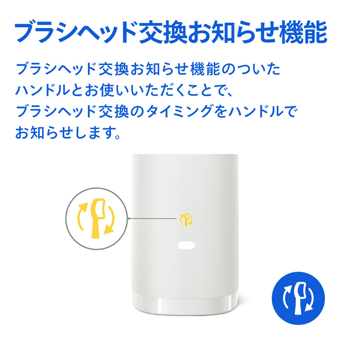 ブラシヘッド交換お知らせ機能のついたハンドルとお使いいただくことで、ブラシヘッド交換のタイミングをハンドルでお知らせします。