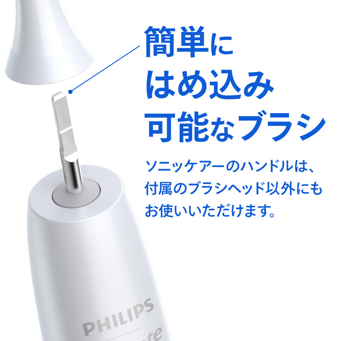 ソニッケアーのハンドルは、付属のブラシヘッド以外にもて、お気に入りを見つけてください。(Philips One、キッズ、eシリーズを除く)
