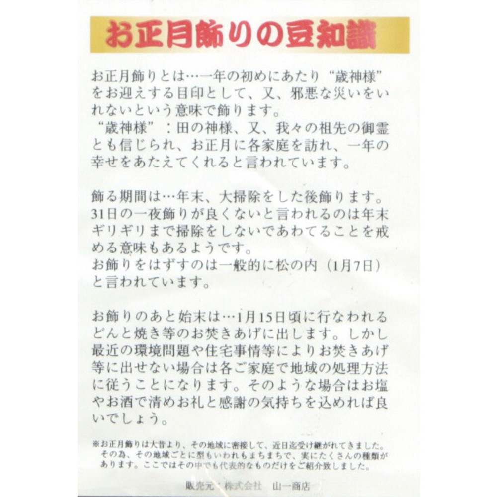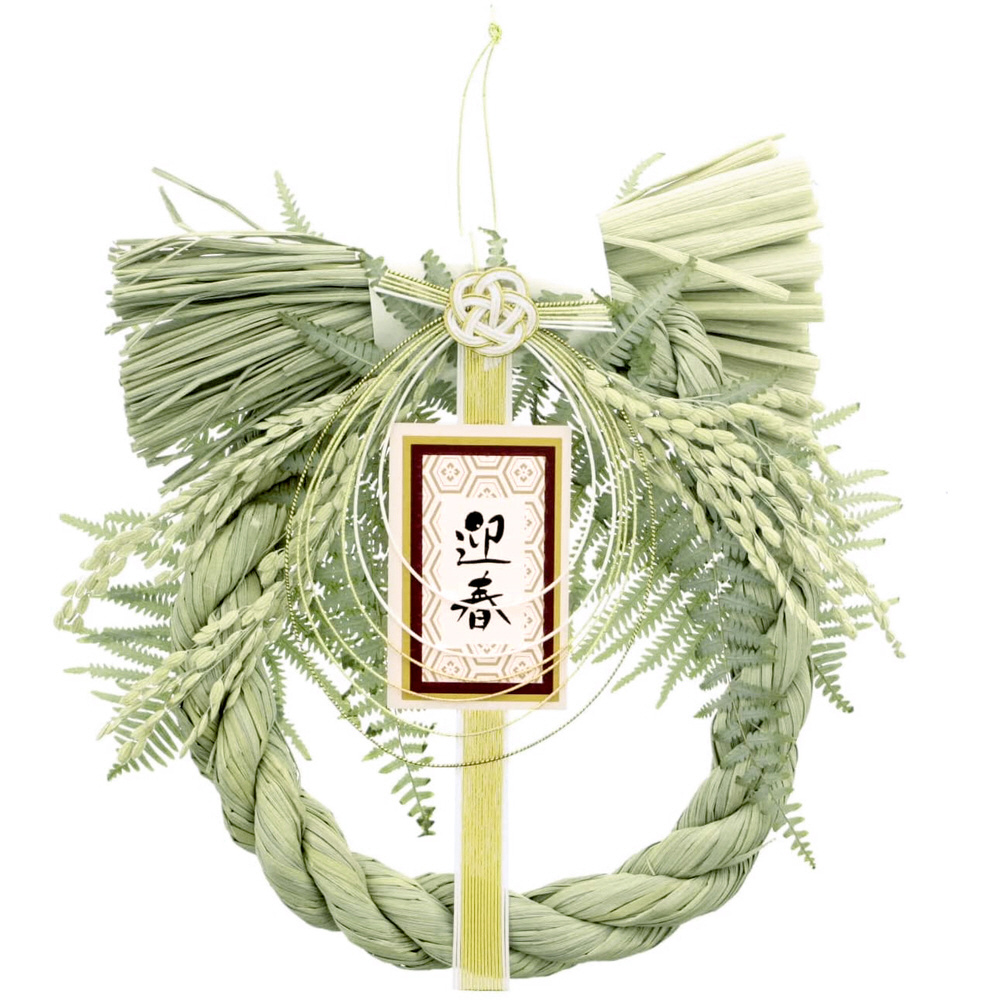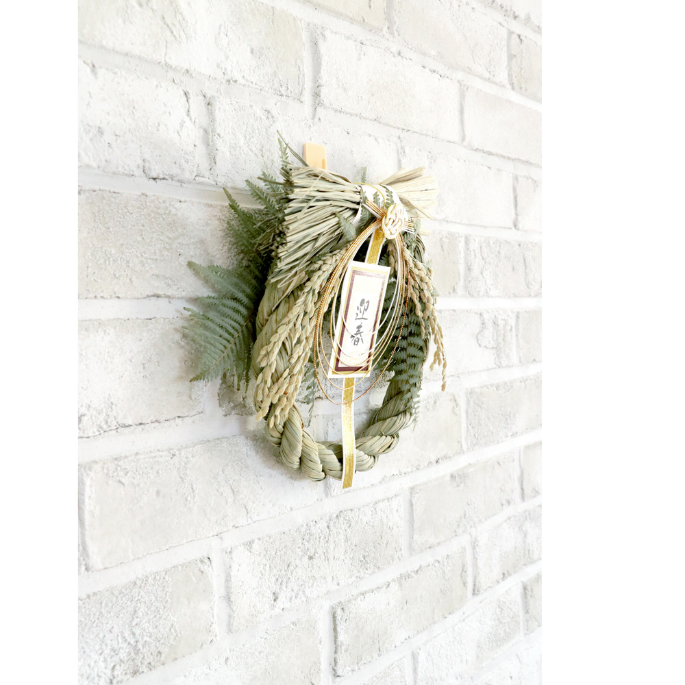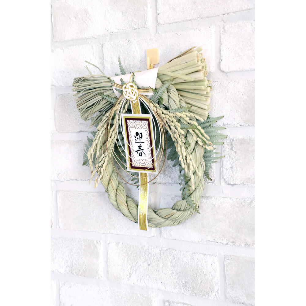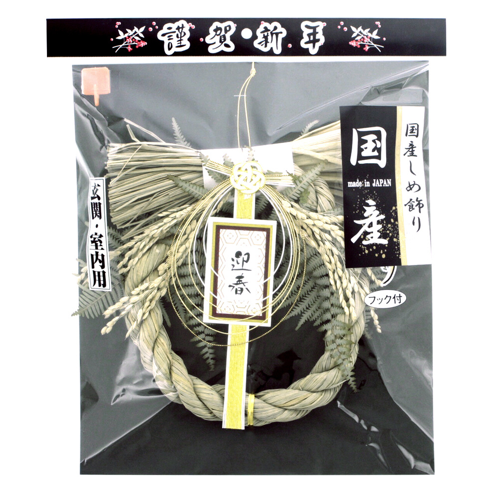 玄関・室内用迎春飾り。まこもと本わらを使用した、伝統的なお正月飾り。取付フック付き