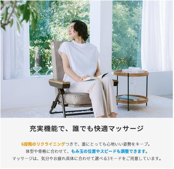 普段使いのインテリアチェアとして使い、マッサージチェアとして活用することができます。