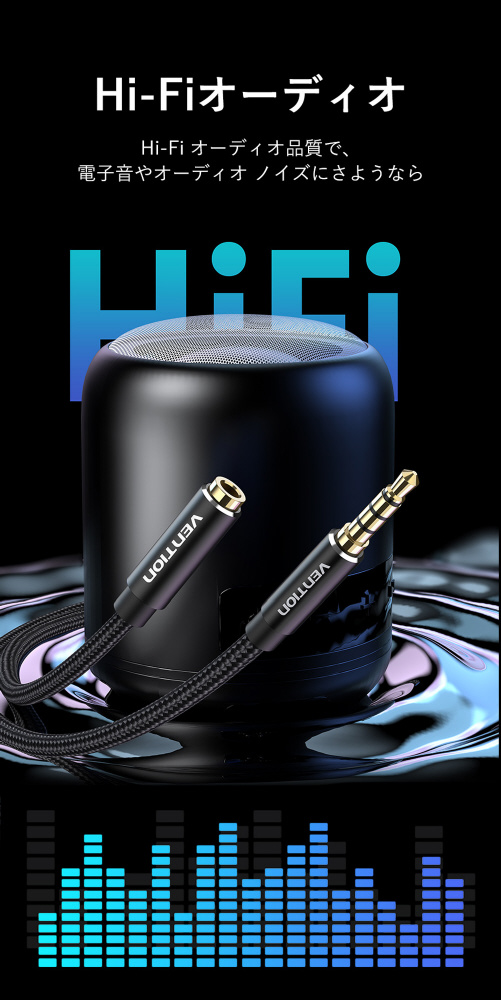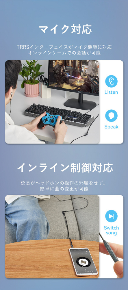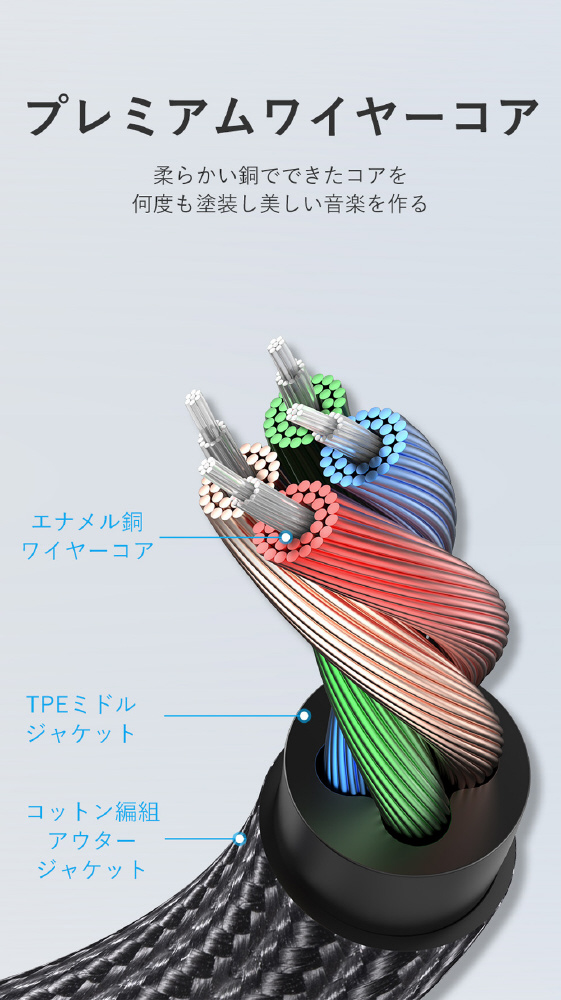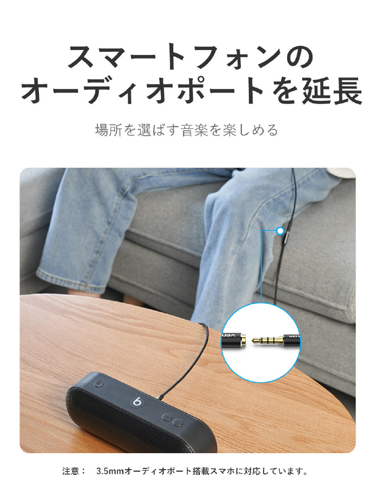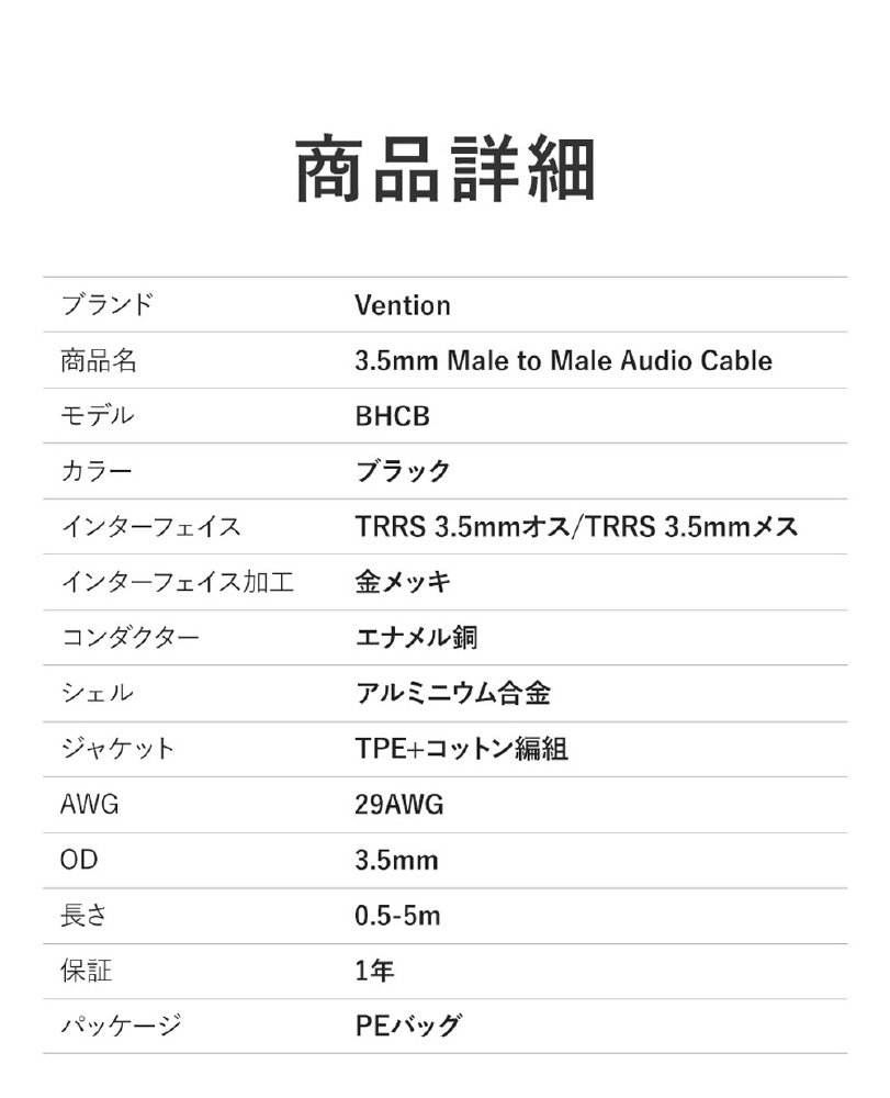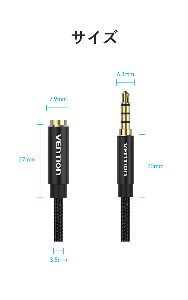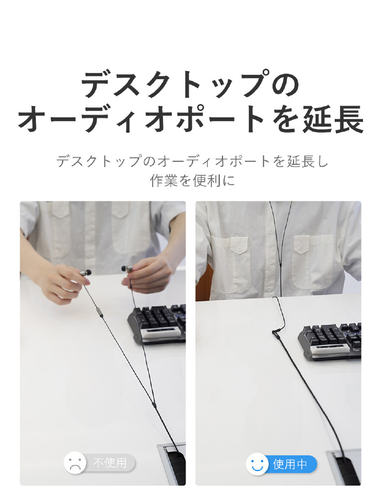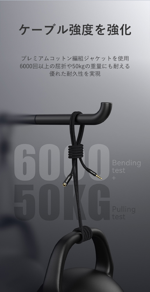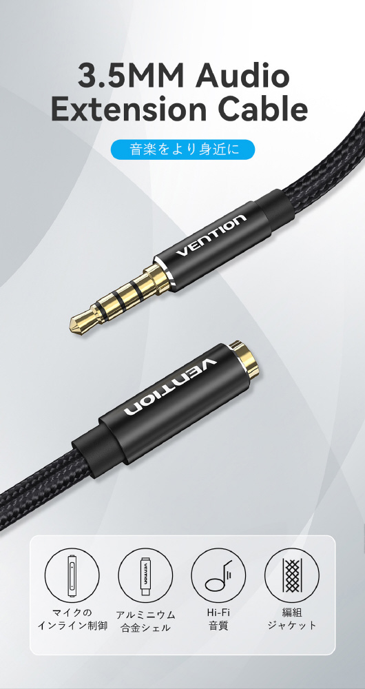 3.5mmステレオミニプラグの延長ケーブル。4極端子なのでマイク付きヘッドホンなどにも対応。プレミアムコットン編組ジャケットを使用。6000回以上の屈折や50kgの重量にも耐える優れた耐久性を実現。高品質の銅線、光沢のある金属コネクタで設計されています。信号の損失とノイズを排除し、クリアなステレオサウンドを提供します。