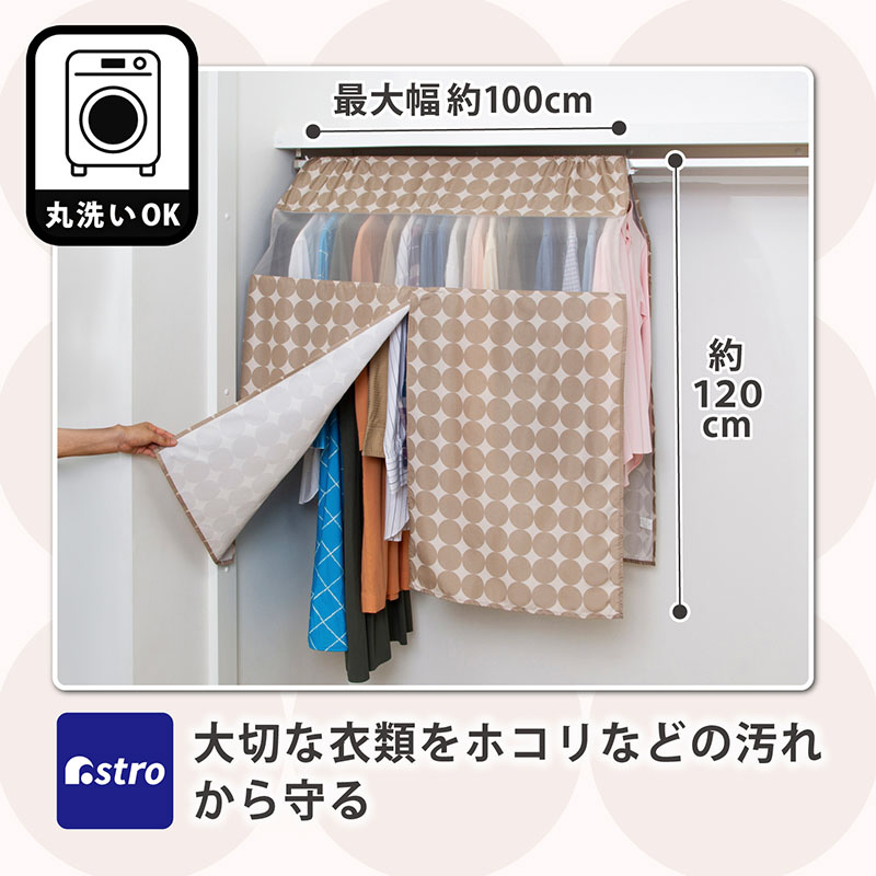 ホコリがついても洗濯機で洗えるので衛生的。衣類が見えるメッシュ窓付き。