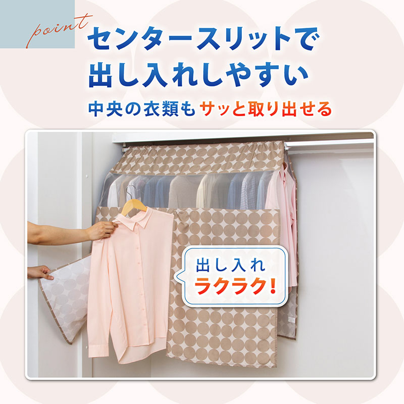 センタースリットで衣類の出し入れがスムーズ。クローゼットの中でも使える。