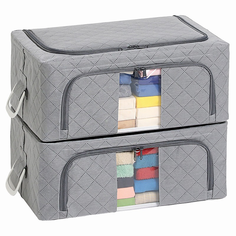 サイズ/約幅48×奥行36×高さ20cm、内容/2個、カラー/グレー、耐荷重/12kg、収納目安(1個あたり)/厚手セーターなら約5~7枚・薄手シャツなら約20~25枚、材質/ポリプロピレン・活性炭シート・鉄・厚紙