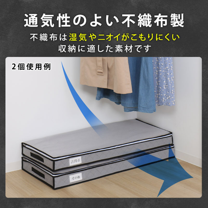 【通気性の良い全面不織布製の収納ケースと中身が見える保管袋】
