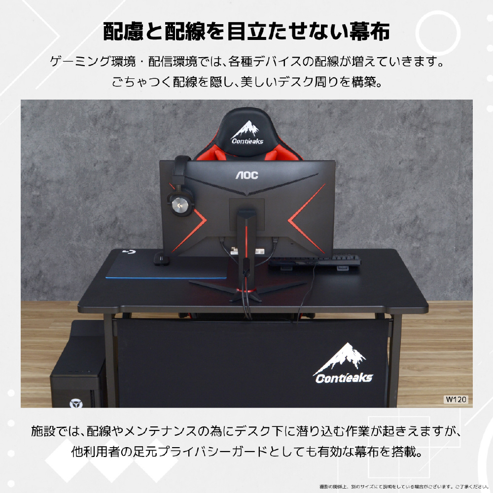 eスポーツ施設で使用されるデバイスから割り出したデスクサイズ。PC本体をデスク上に設置しても快適に使用できる奥行きがあります。