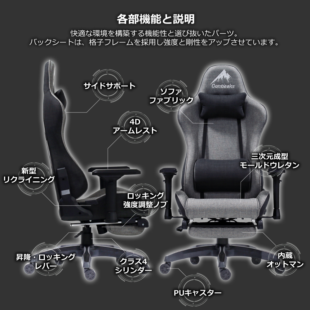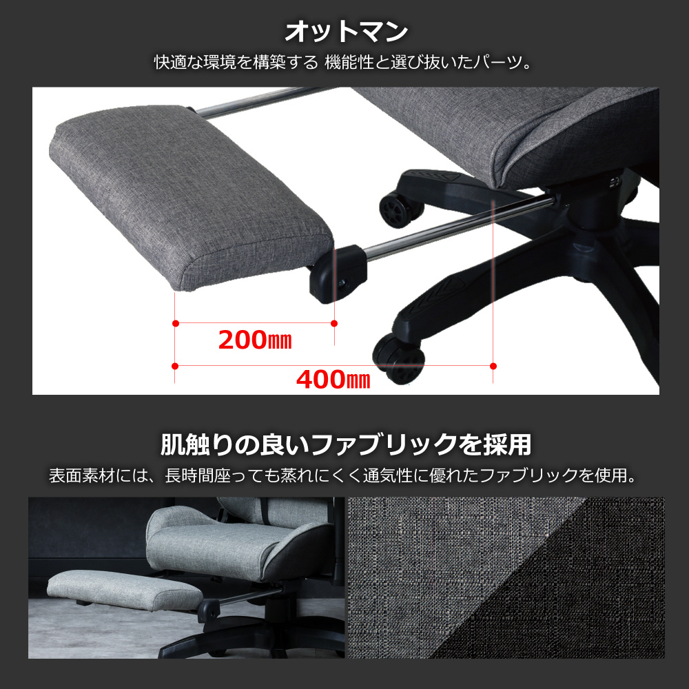 426043 ゲーミングチェア [シート W405xD490xH1225〜1305(+80)mm] オットマン付 Shastina V3-シャスティーナ-(ファブリック) グレー