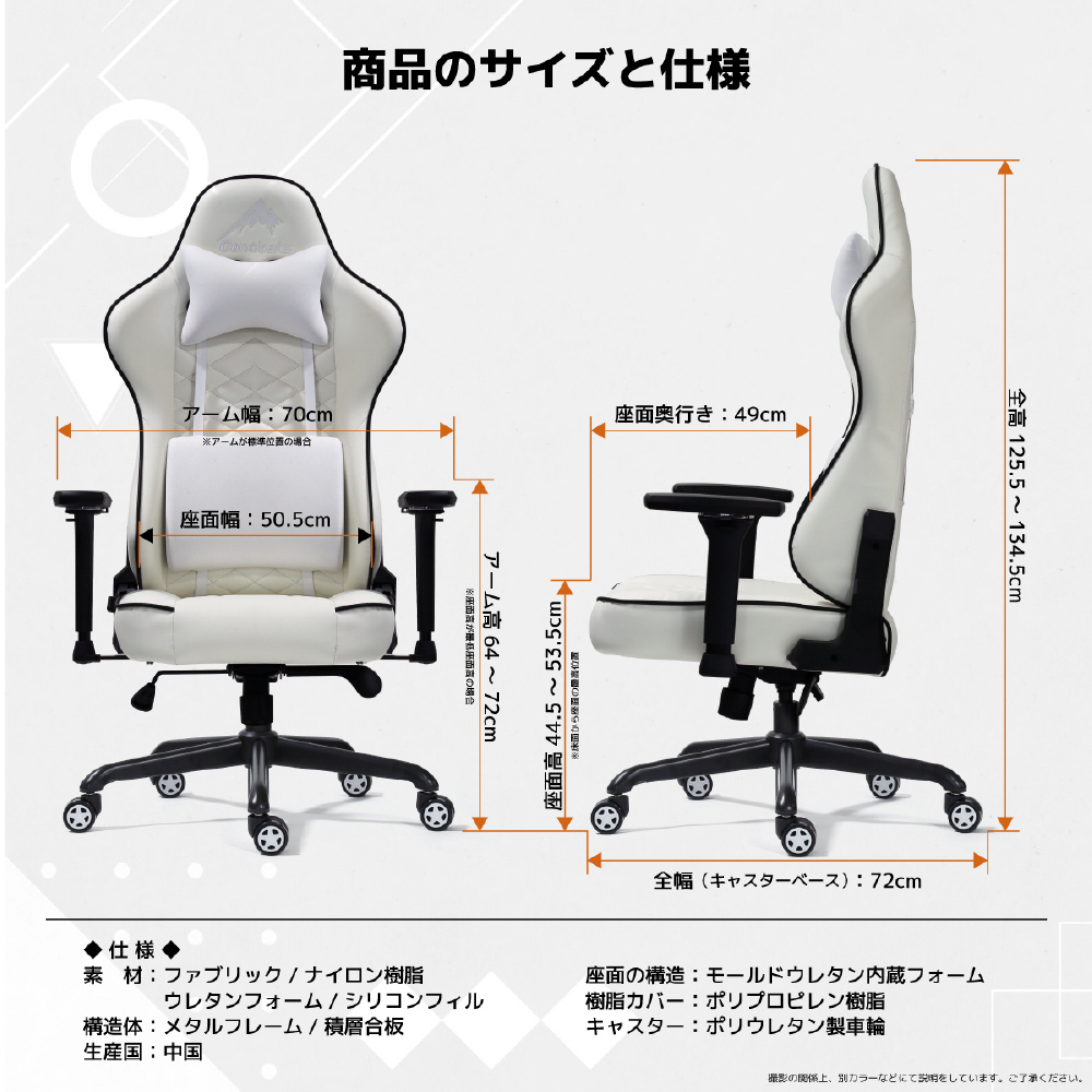 アームパッドの位置調整機能で前後位置・左右位置・首振角度・上下高さ調整が可能な4Dアームレストを採用。