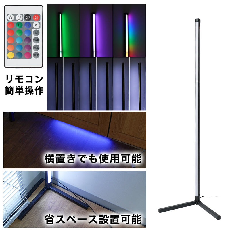 RGBコーナーフロアライトは、部屋や好みに合わせて色や明るさ、高さを変えられます。