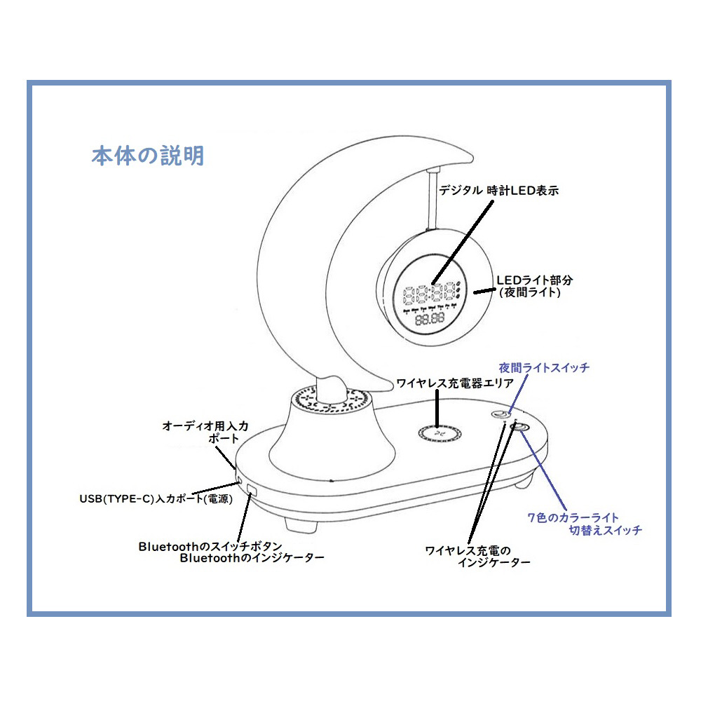 時計機能、スピーカー機能、ワイヤレス充電機能も搭載しています。