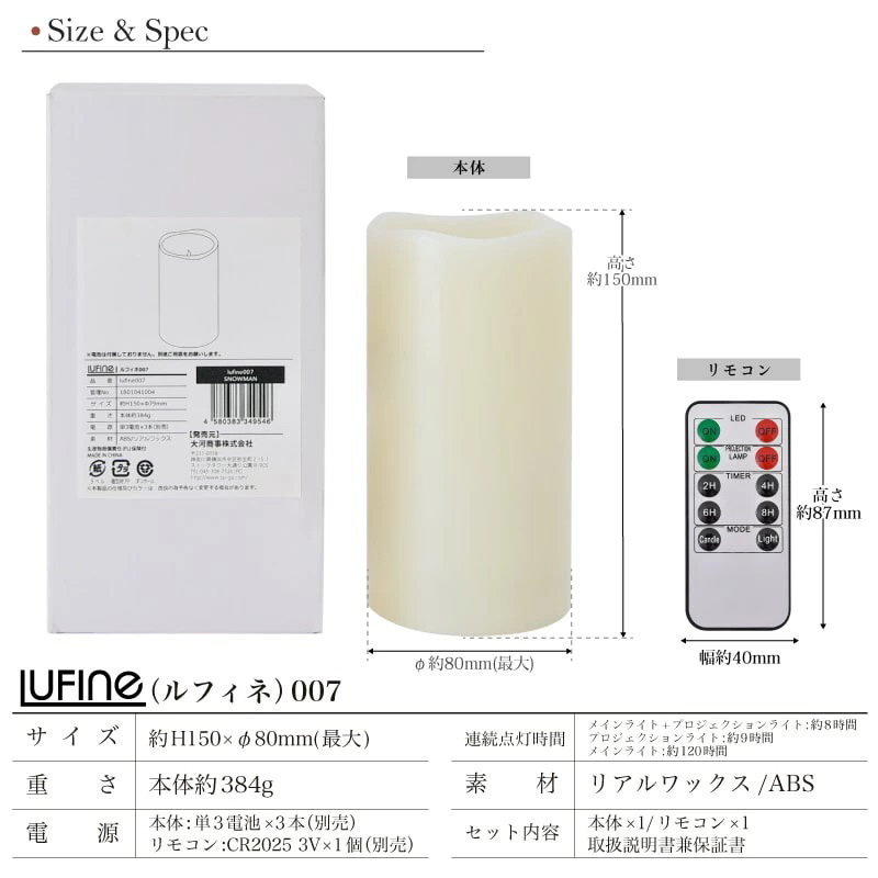 【電源】本体:単3電池×3本(別売)/リモコン:ボタン電池CR2025 3V×1個(別売)
