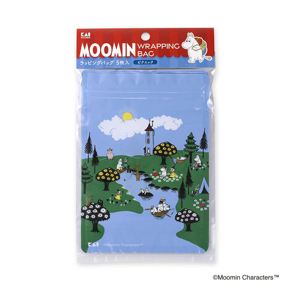 ムーミン谷のジップ付きで便利なラッピングバッグ。表と裏で柄が異なり、どちらもムーミンと仲間たちが楽しくピクニックをしているデザイン。中身が見えないタイプ。ギフトだけでなく小物入れにも使えます。【仕様】同柄5枚入り●耐冷温度:0度