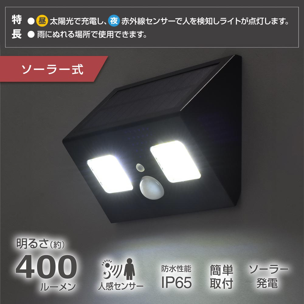 ● 明るさ400ルーメン ■ 検知方式:赤外線受動方式