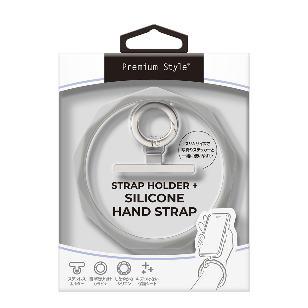 ストラップホルダー付 シリコンハンドストラップ Premium Style グレー PG-HST02GY