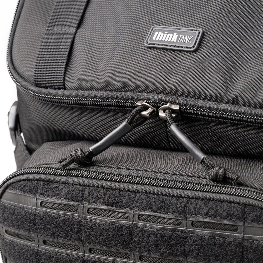 また、ジッパーで開閉する上蓋からもメインコンパートメントへアクセスができ、素早く機材の出し入れができます。
