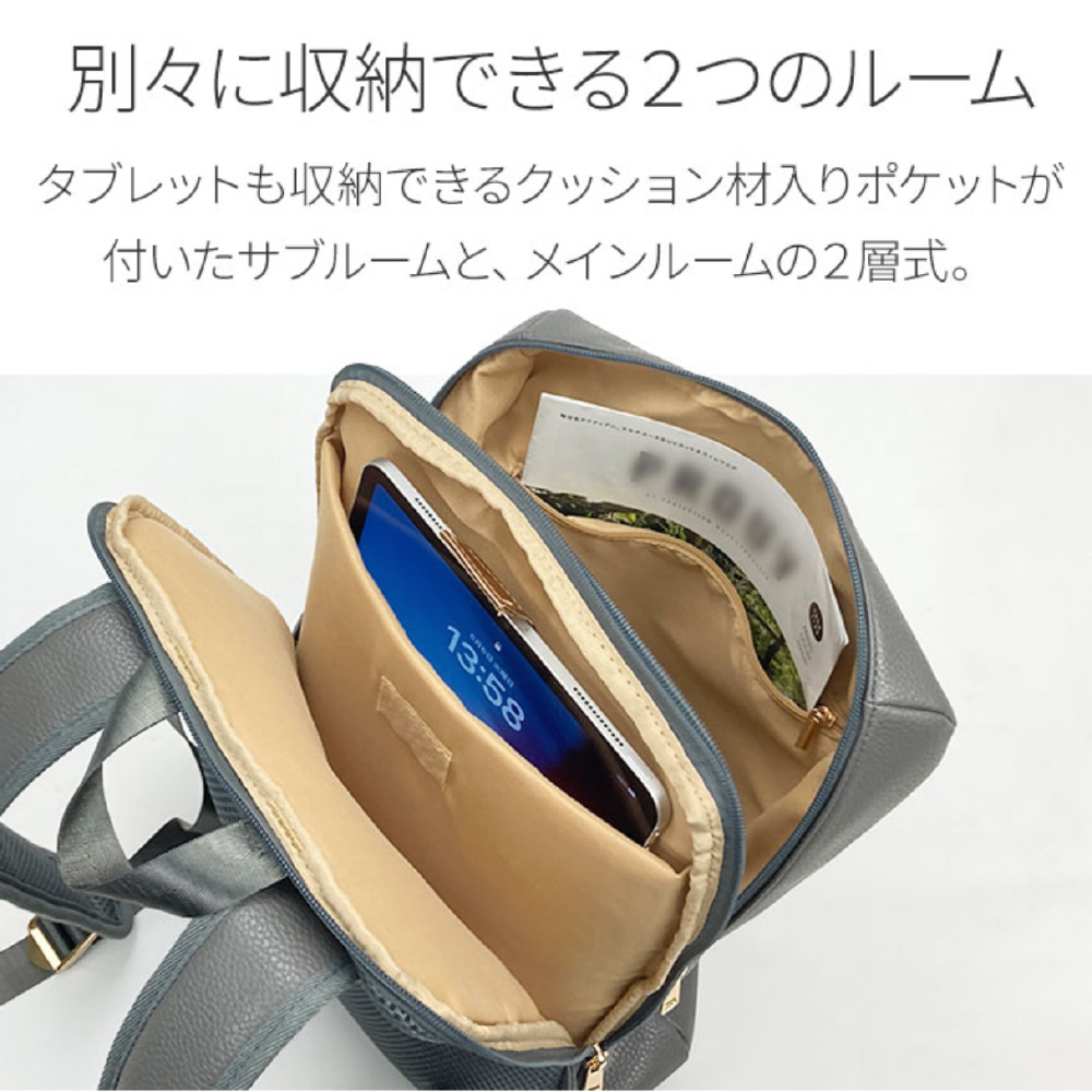コンパクトながらA4ファイルをしっかり収納できるメインスペースを備え、タブレット収納に最適なサブルームも完備。日常使いに便利な設計です。