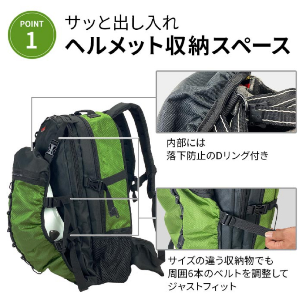 ヘルメットリュック ヘルメットバッグ デイパック 大容量[40L] ガルウイング グリーン 42592