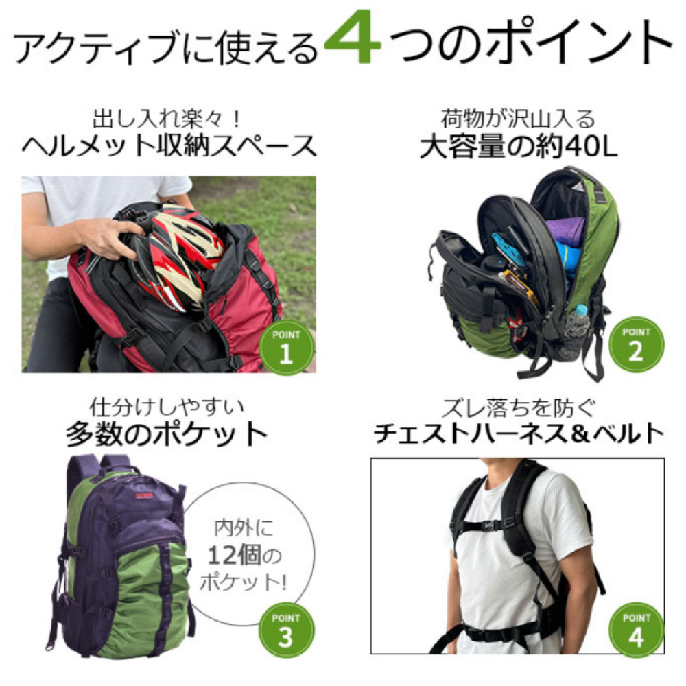 大容量ヘルメットリュック - 通勤からスポーツまで対応
