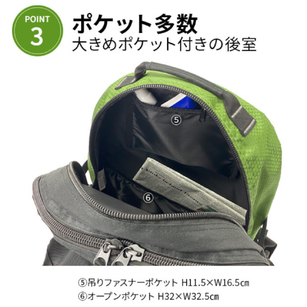 大容量設計(40L):着替えや水筒も楽々収納可能で、荷物が多い方にも安心。