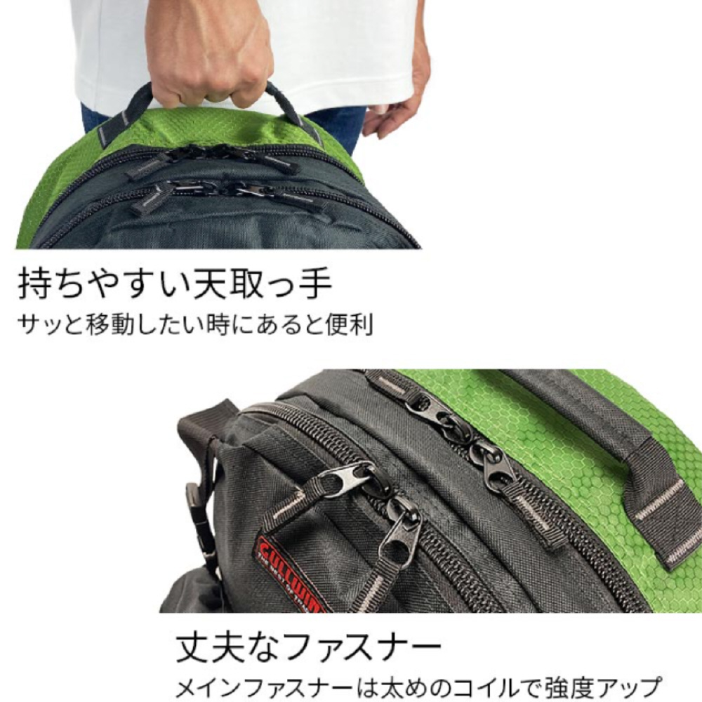 ヘルメットやボールの収納に悩む方におすすめの大容量リュックサックです。外部に設けられた専用収納スペースで、ヘルメットを他の荷物と分けて持ち運び可能。ボールなどのスポーツアイテムも収納でき、多目的に使えます。