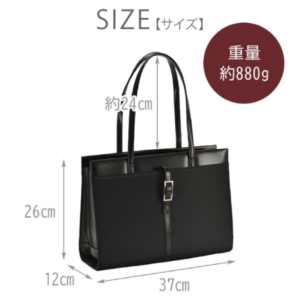 ベーシックな黒色と落ち着いたフォルムは、フレッシュなスーツスタイルにマッチ。就活後の通勤バッグとしても長くお使いいただけます。