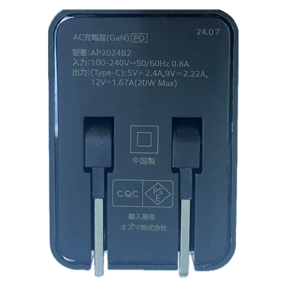 ●やわらかいシリコンケーブルが一体型になった最大出力20Wの急速充電器です。