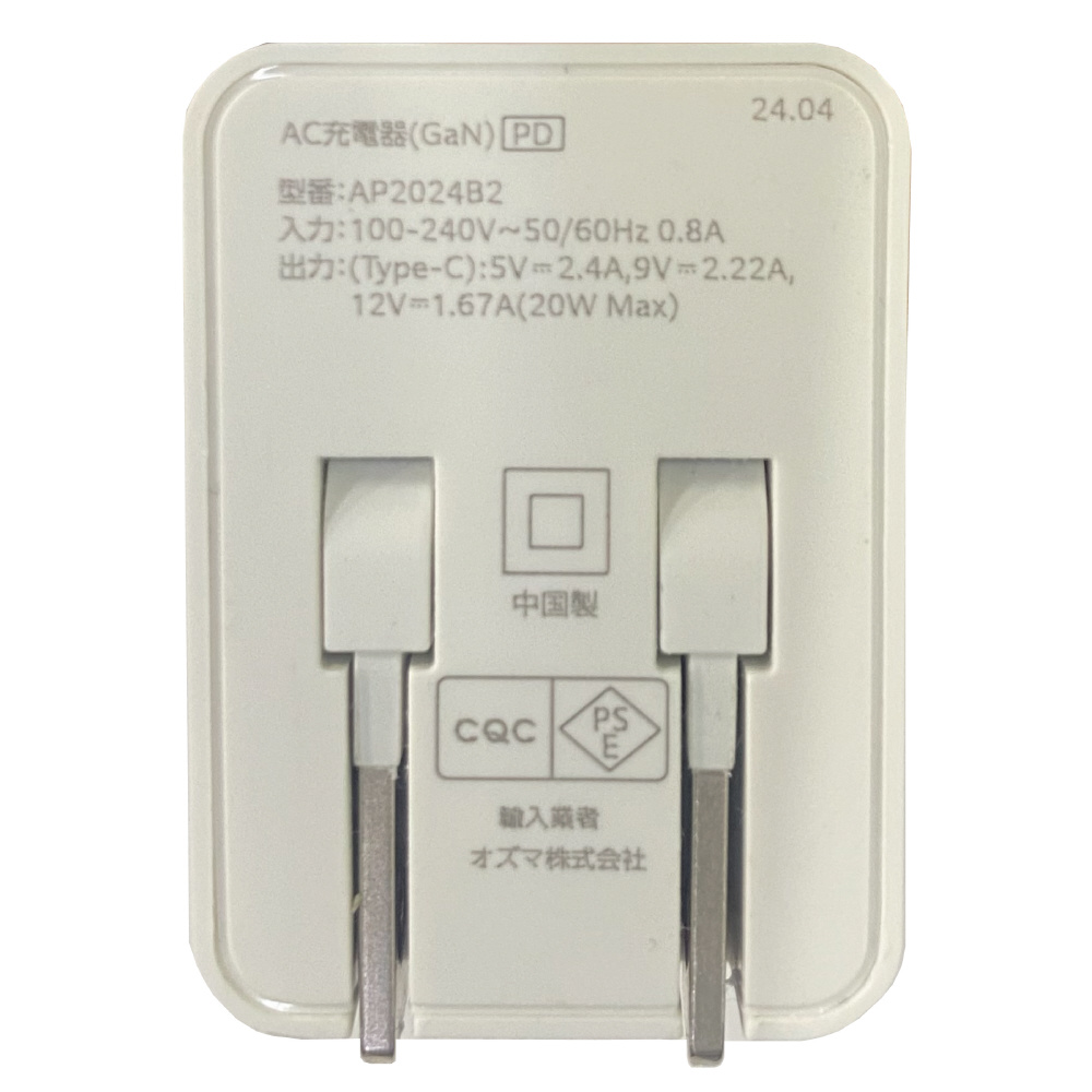 ●やわらかいシリコンケーブルが一体型になった最大出力20Wの急速充電器です。