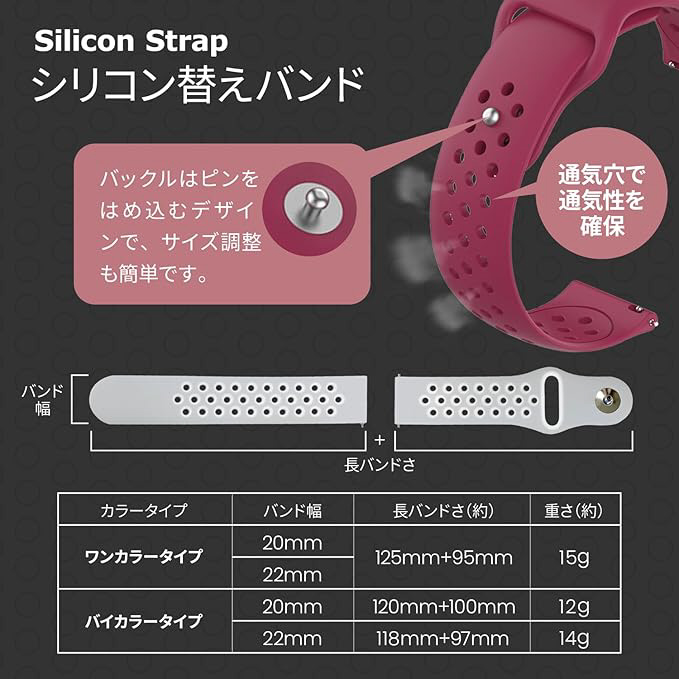 ・バックルはピンをはめ込むデザインで、サイズ調整も簡単です。
