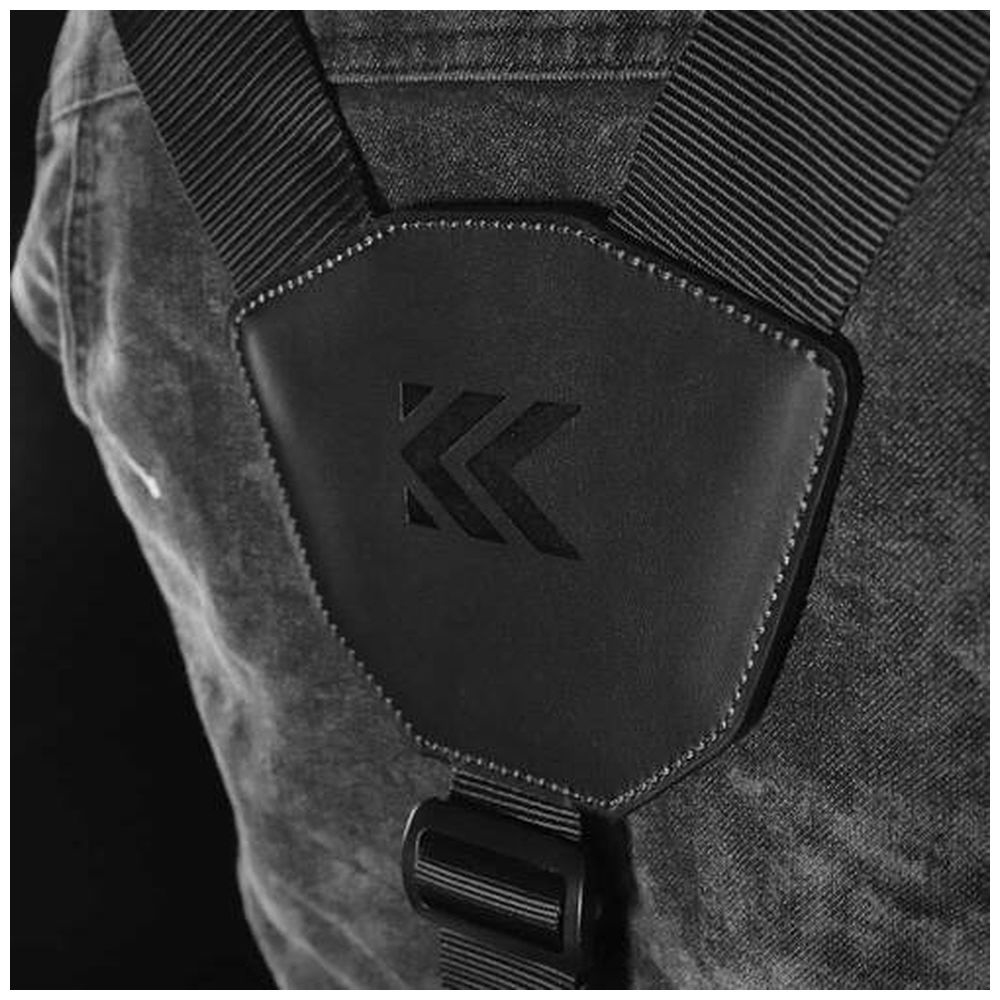 腰周りの重量を分散して疲労軽減、通気性の良い素材で蒸れにくく、肩部分にはクッション付きで負担を軽減する設計です。