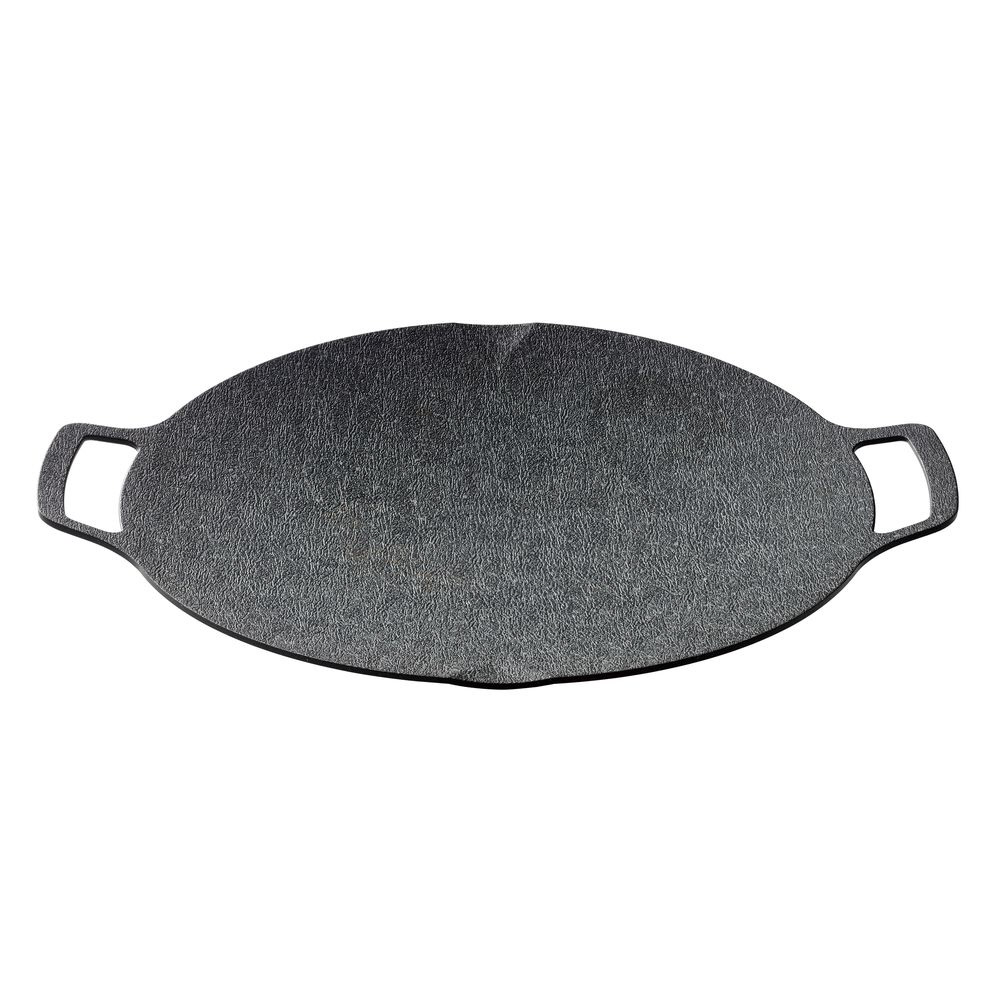 ご家庭でも扱いやすいふっ素樹脂加工のグリドル。アルミ製で軽く、扱いやすいのもポイントです。グリドルは、お肉や野菜の調理にぴったりです。メインから〆の料理、スイーツ系まで幅広くお使いいただけます。焼肉や野菜の調理にもピッタリ!32cmの大きなサイズで、一度にたくさんの食材を調理することができます。カセットコンロや五徳の上で安定して使える溝付き。五徳から滑り落ちる心配がないので片手で調理ができます。内面はおしゃれな石目模様のふっ素樹脂加工。お皿のように簡単に汚れを落とせます。アウトドアでも自宅でもマルチに使用できます。話題の韓国料理にチャレンジ!