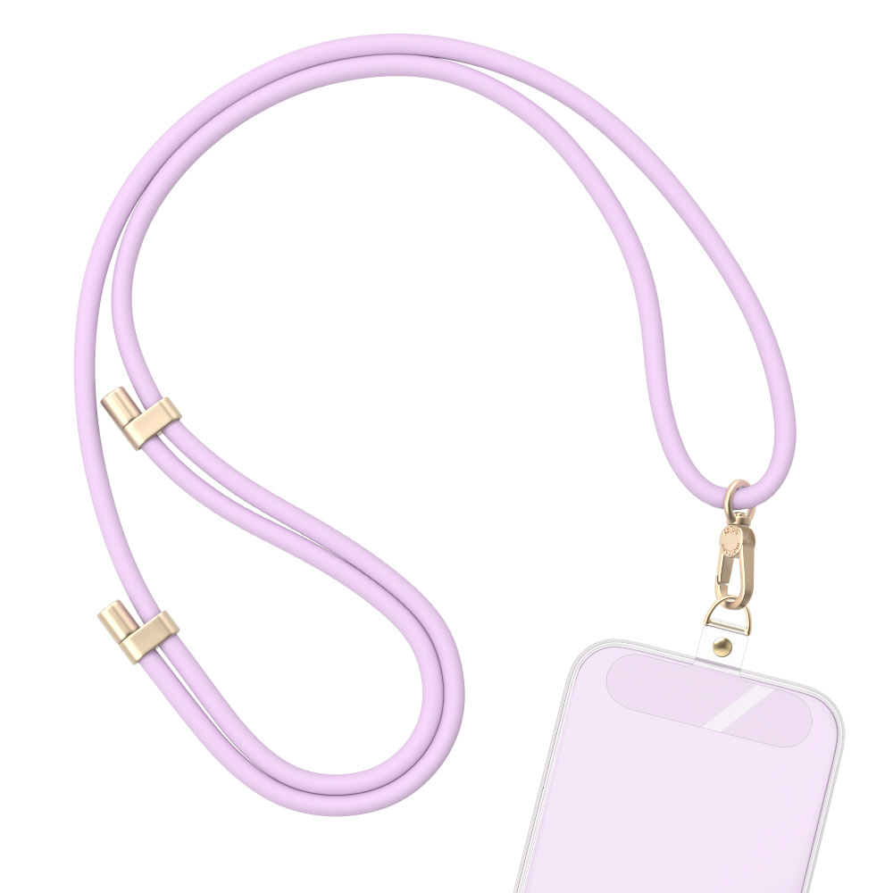 肌触りのよいなめらかなシリコン製のストラップです。柔らかく太めの丸紐形状となっており、スマホを付けた状態でも肩に食い込むこともありません。汚れがついた場合でも、水拭き・水洗いも可能なので衛生面も安心です。