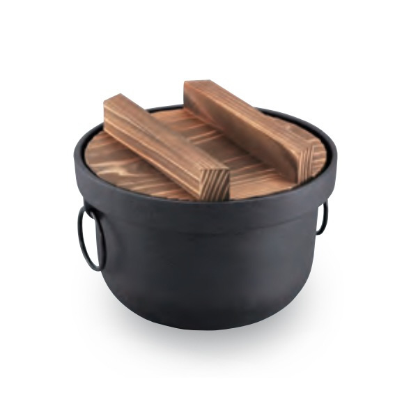 木蓋付きの鉄釜で、昔ながらの手法でご飯を炊くことができます。
