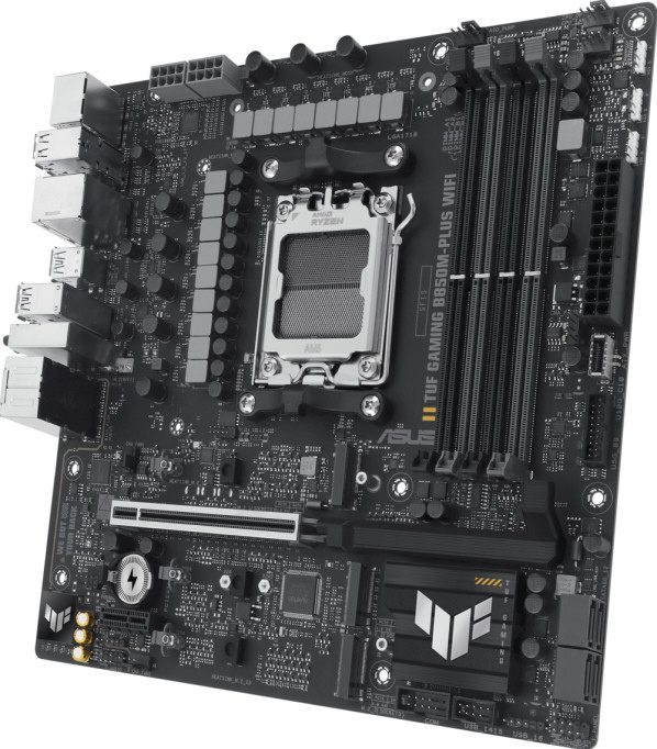 ASUS TUF GAMING B850M-PLUS WIFIは、最新のAMD Ryzenプロセッサの要素をすべて備え、ゲーム向けの機能と確かな耐久性を組み合わせた製品です。