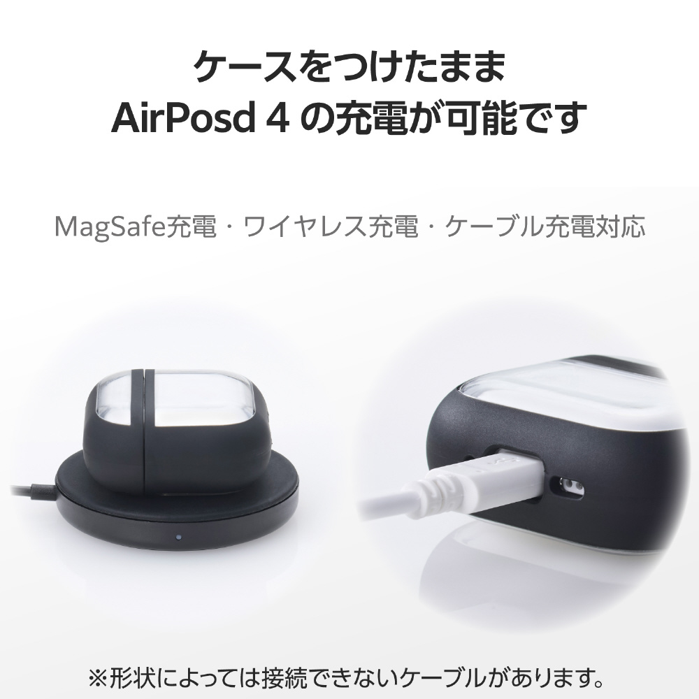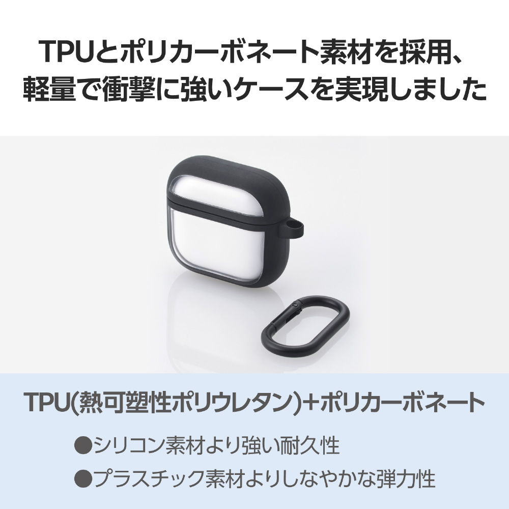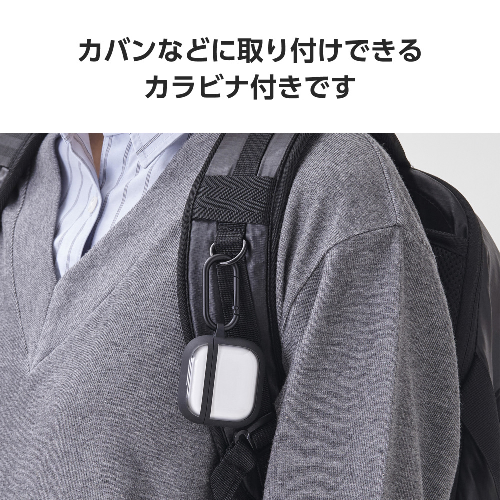 AirPods 4 ケース 用 耐衝撃 カバー ( ワイヤレス / MagSafe 充電対応 ) 衝撃吸収 落下防止 カラビナ付 TOUGH SLIM LITE ブラック AVA-AP06TSLFCBK