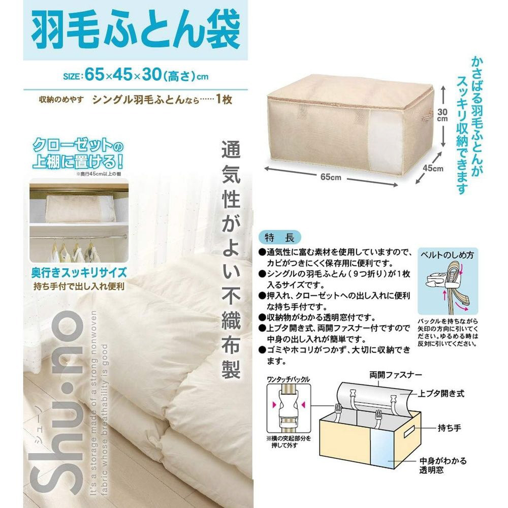 通気性がよい不織布製かさばる羽毛ふとんがスッキリ収納できます。