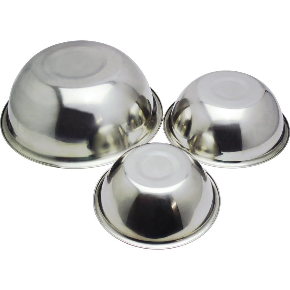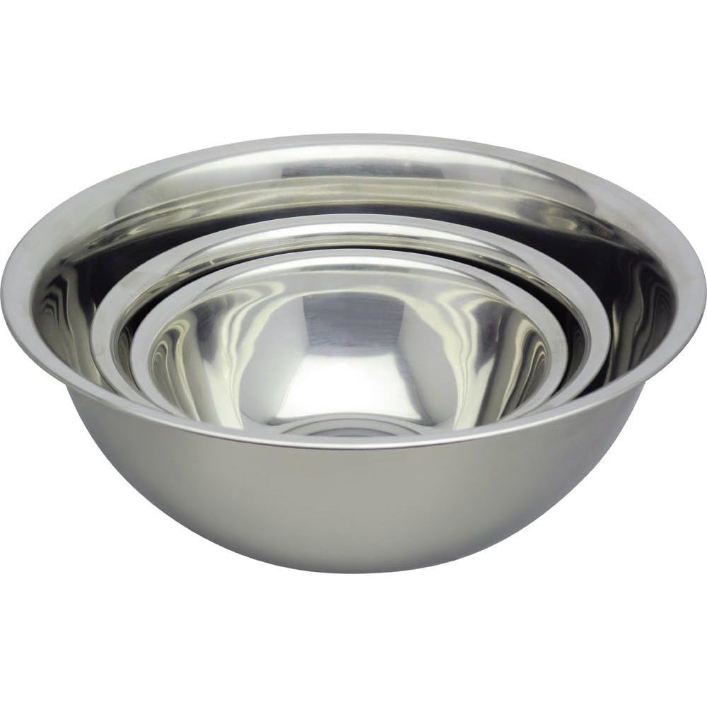 衛生的なステンレス製ボール3テンセット。15・18・24cmの3サイズで、用途によって使い分けできます。水洗い、まぜる、泡立てる…さまざまな調理に活躍します。重ねてスッキリ片付けられます。