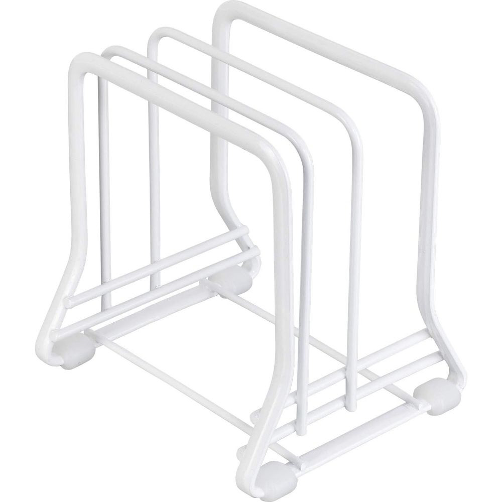 キッチンのコーディネートがしやすい、ホワイトカラーのスタンド。置いた場所を傷付けにくい足部の工夫があります。場所を取らないコンパクトタイプ。まな板を2枚、シートまな板1枚を収納できます。傷付けにくいゴム足付。