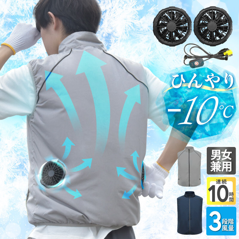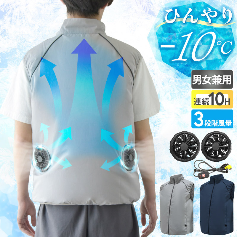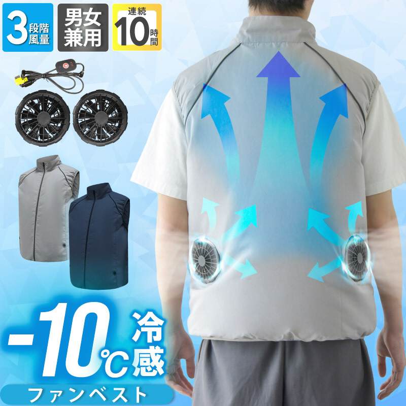 暑い日の屋外作業を快適に!2つのファンで一気に風を巡らせ、熱いカラダを速攻冷却!熱中症予防や作業の効率化に。