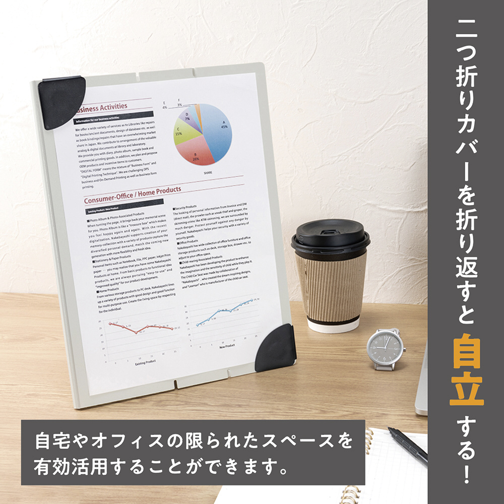 カドでとめるマグネットクリップボード「カドップ」は、対角のカドにある2つのクリップで書類を固定する、タテ・ヨコ兼用クリップボードです。スペパ・タイパに特化した第2弾として、自立可能なスタンドタイプを新発売します。