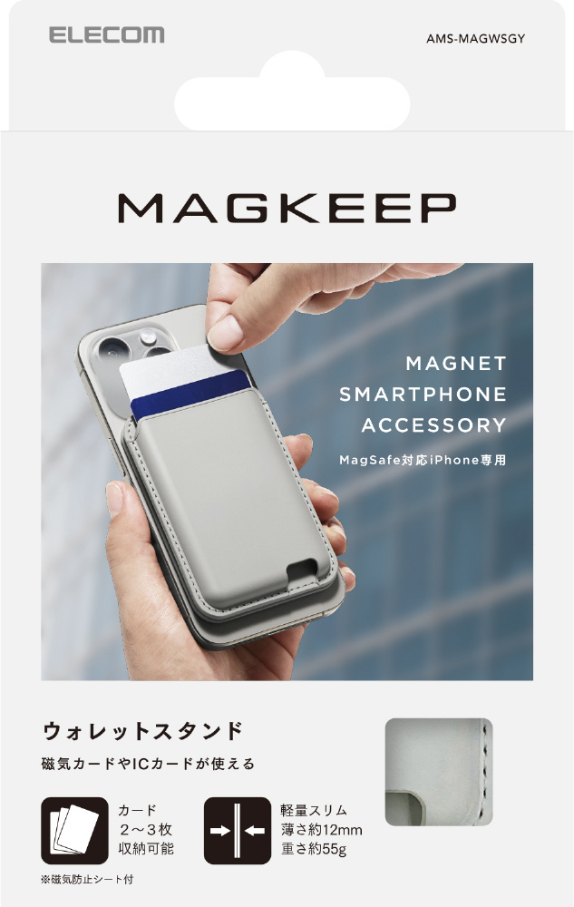 カードケース スマホスタンド MagSafe iPhone 用 カード ウォレット スマホ スタンド 2~3枚収納 磁気防止シート付属 マグネット 簡単脱着 軽量 薄型 AMS-MAGWSGY